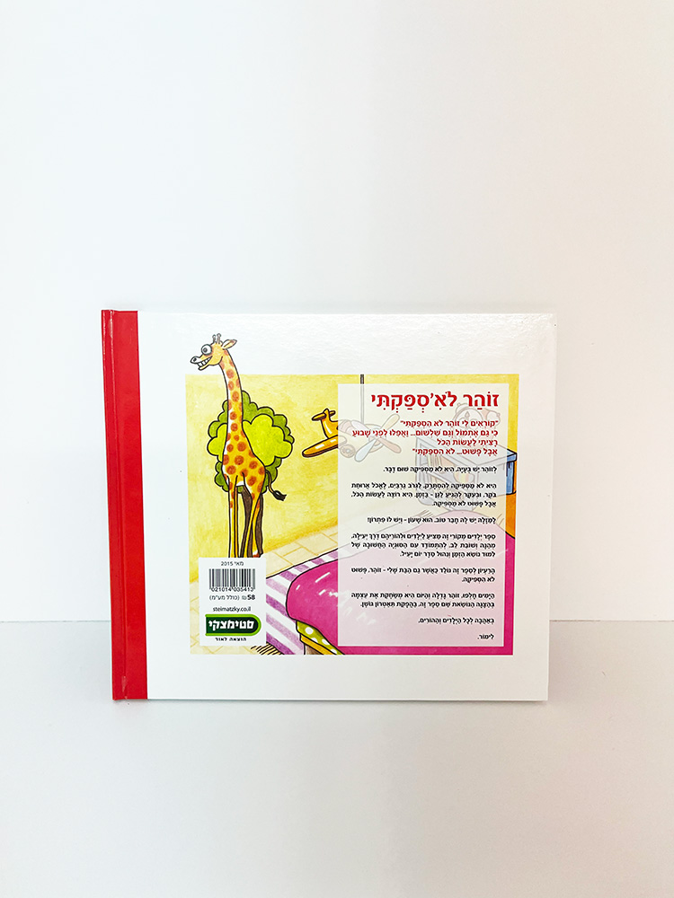 הספר של הוצאת סטימצקי על זוהר לא'ספקתי – הסיפור שקרה לזוהר כשהיא איחרה לגן יחד עם תיק מקסים של זוהר שבו היא מכניסה ספרים ואיתו היא הולכת לגן.